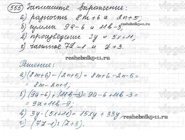 Готовая домашняя работа с ответами по Математике за 5 класс Виленкин, Жохов, Чесноков, Шварцбурд Учебник Мнемозина 2013 ФГОС - Глава 1. Натуральные числа (упражнения с 1 по 849) 555