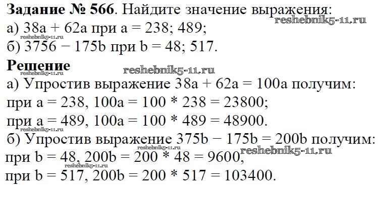 Готовая домашняя работа с ответами по Математике за 5 класс Виленкин, Жохов, Чесноков, Шварцбурд Учебник Мнемозина 2013 ФГОС - Глава 1. Натуральные числа (упражнения с 1 по 849) 566
