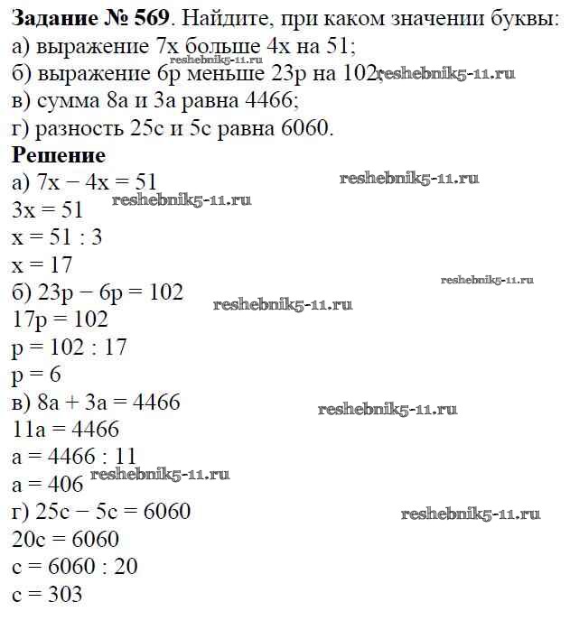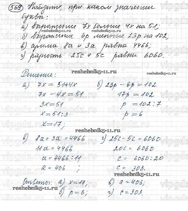 Готовая домашняя работа с ответами по Математике за 5 класс Виленкин, Жохов, Чесноков, Шварцбурд Учебник Мнемозина 2013 ФГОС - Глава 1. Натуральные числа (упражнения с 1 по 849) 569