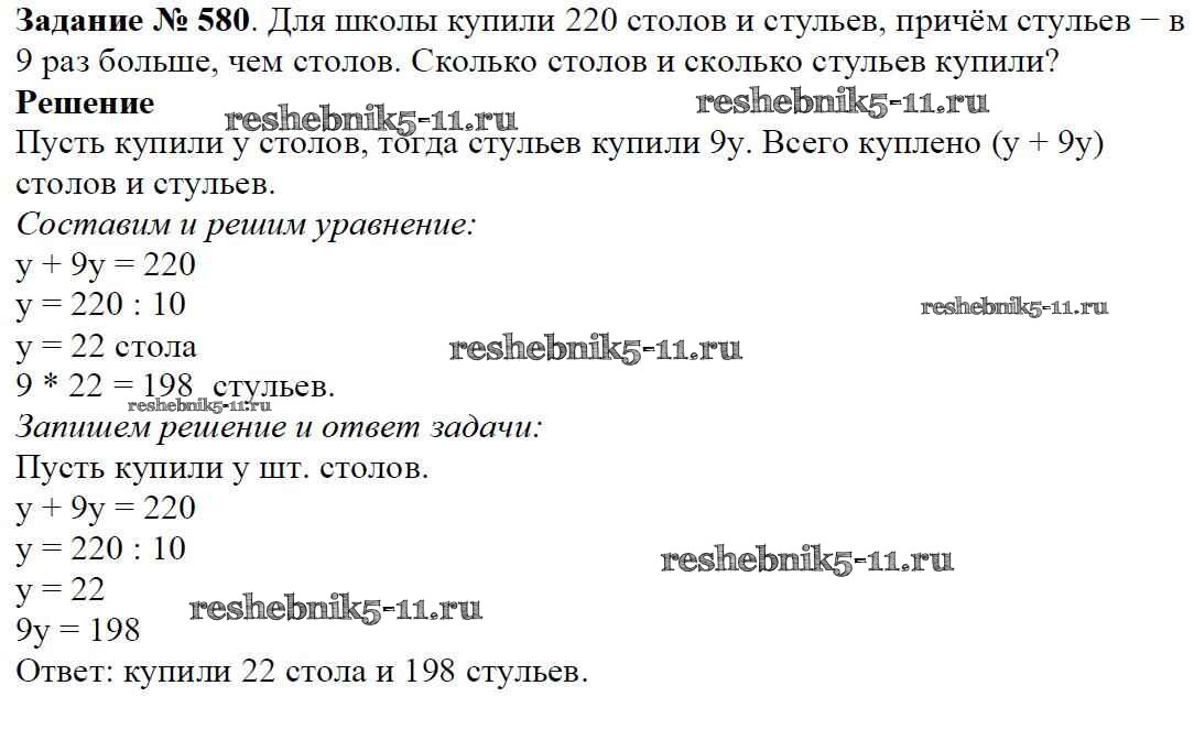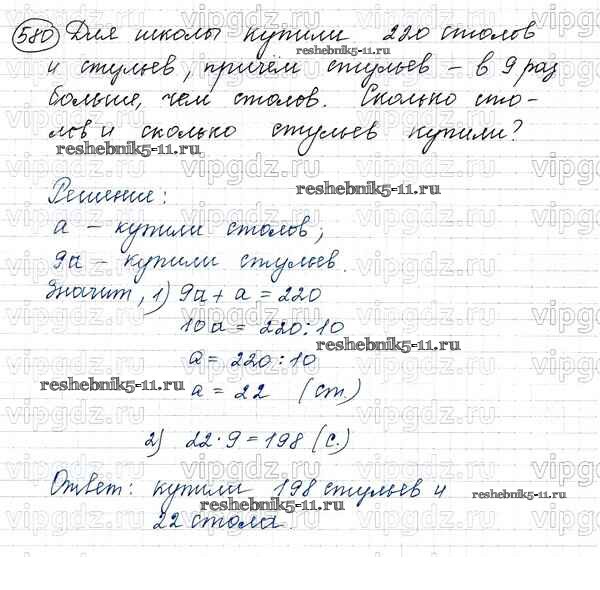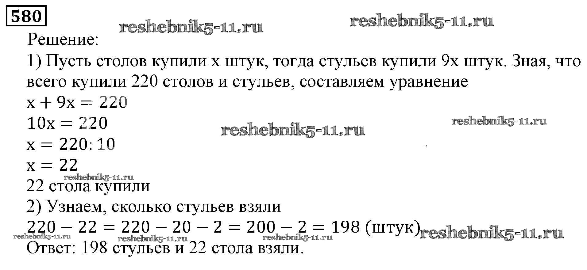 Готовая домашняя работа с ответами по Математике за 5 класс Виленкин, Жохов, Чесноков, Шварцбурд Учебник Мнемозина 2013 ФГОС - Глава 1. Натуральные числа (упражнения с 1 по 849) 580