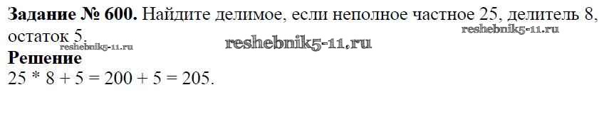 Готовая домашняя работа с ответами по Математике за 5 класс Виленкин, Жохов, Чесноков, Шварцбурд Учебник Мнемозина 2013 ФГОС - Глава 1. Натуральные числа (упражнения с 1 по 849) 600