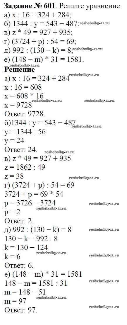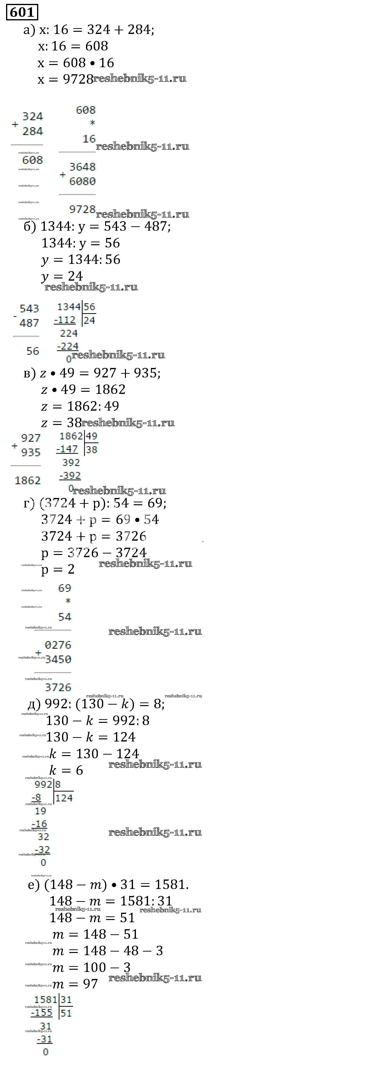 Готовая домашняя работа с ответами по Математике за 5 класс Виленкин, Жохов, Чесноков, Шварцбурд Учебник Мнемозина 2013 ФГОС - Глава 1. Натуральные числа (упражнения с 1 по 849) 601