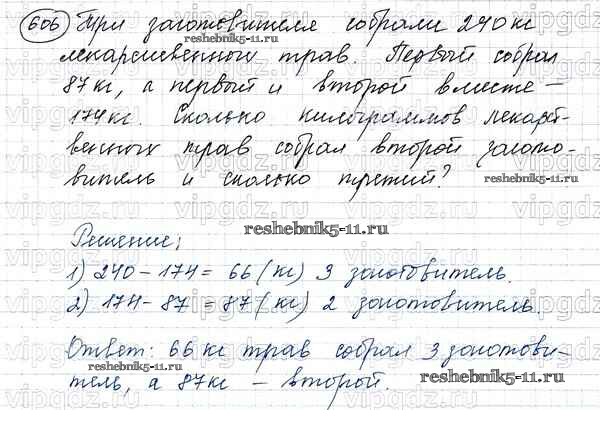 Готовая домашняя работа с ответами по Математике за 5 класс Виленкин, Жохов, Чесноков, Шварцбурд Учебник Мнемозина 2013 ФГОС - Глава 1. Натуральные числа (упражнения с 1 по 849) 606