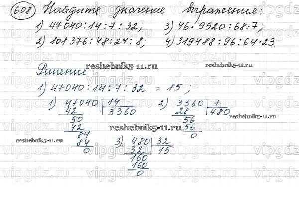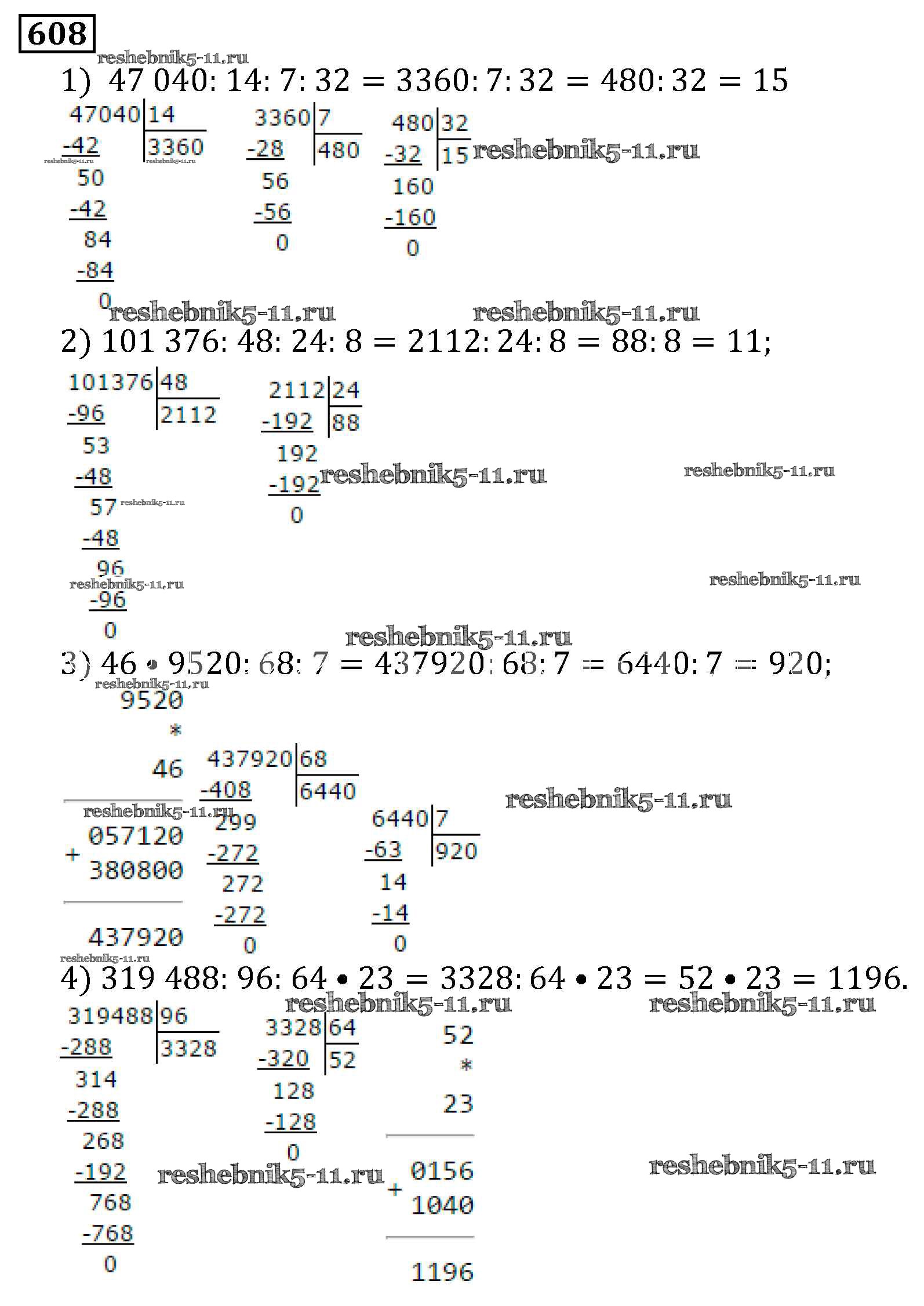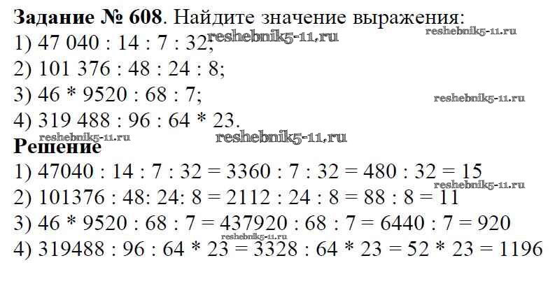 Готовая домашняя работа с ответами по Математике за 5 класс Виленкин, Жохов, Чесноков, Шварцбурд Учебник Мнемозина 2013 ФГОС - Глава 1. Натуральные числа (упражнения с 1 по 849) 608