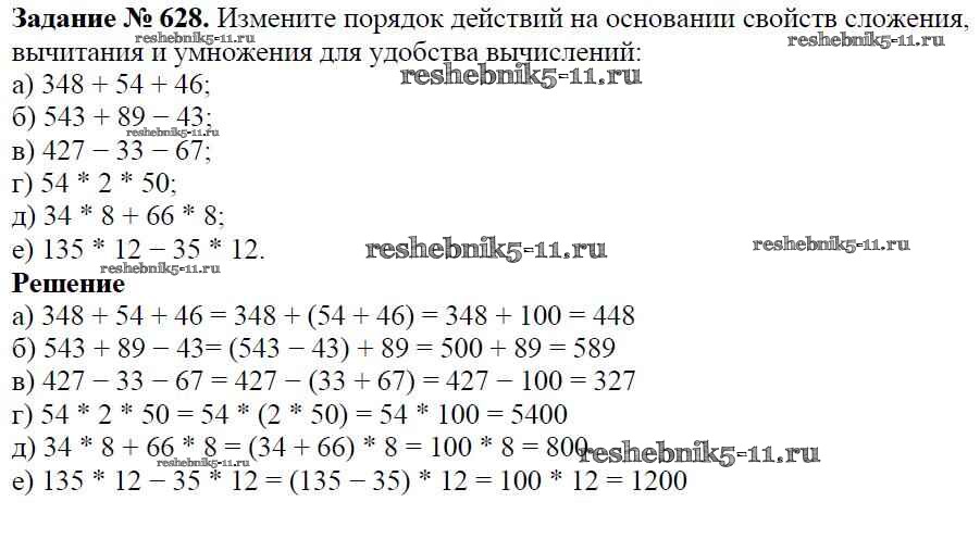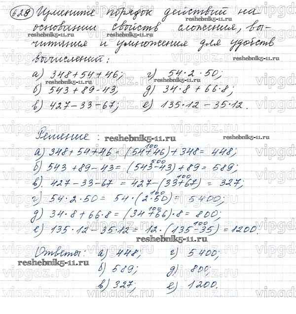 Готовая домашняя работа с ответами по Математике за 5 класс Виленкин, Жохов, Чесноков, Шварцбурд Учебник Мнемозина 2013 ФГОС - Глава 1. Натуральные числа (упражнения с 1 по 849) 628