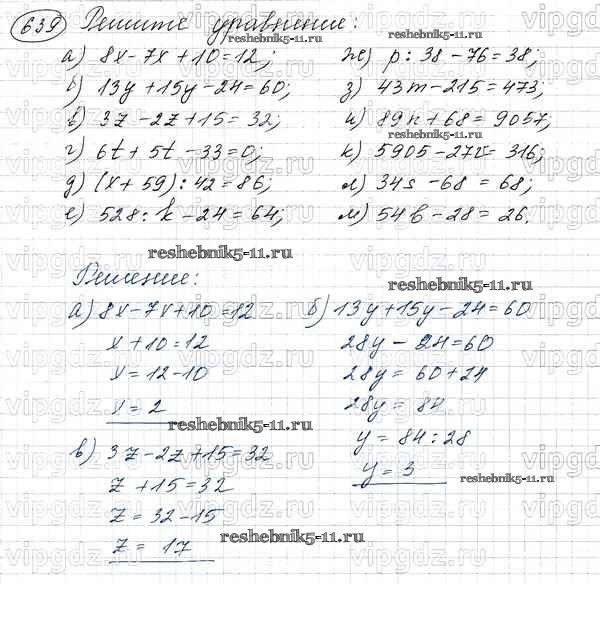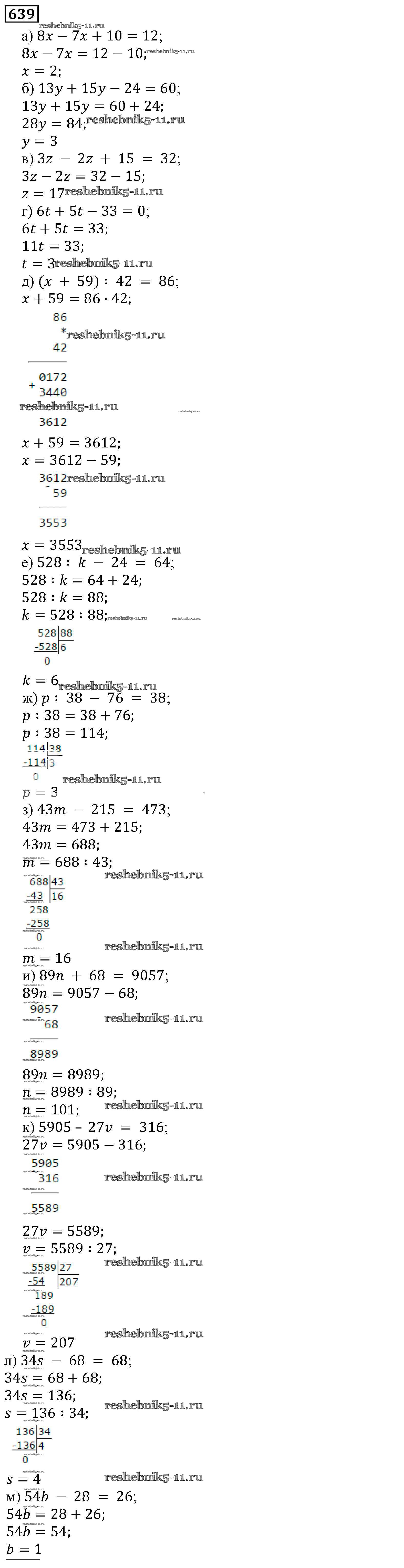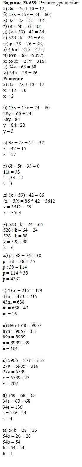 Готовая домашняя работа с ответами по Математике за 5 класс Виленкин, Жохов, Чесноков, Шварцбурд Учебник Мнемозина 2013 ФГОС - Глава 1. Натуральные числа (упражнения с 1 по 849) 639