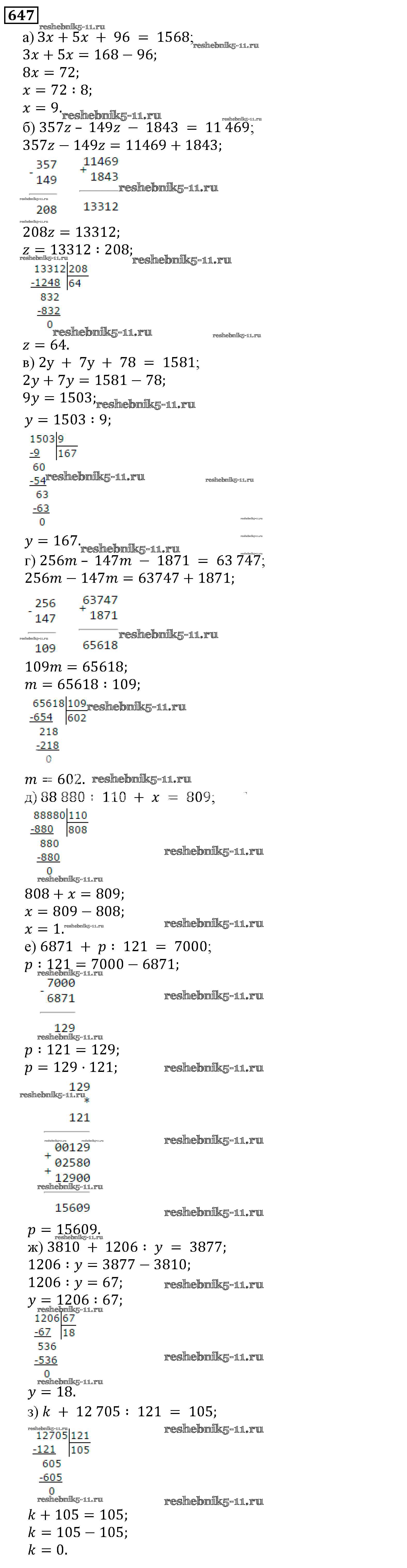 Готовая домашняя работа с ответами по Математике за 5 класс Виленкин, Жохов, Чесноков, Шварцбурд Учебник Мнемозина 2013 ФГОС - Глава 1. Натуральные числа (упражнения с 1 по 849) 647