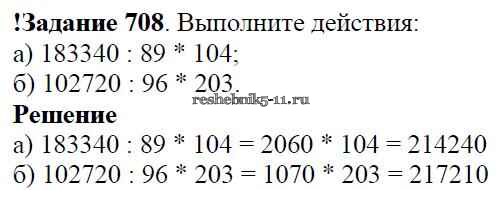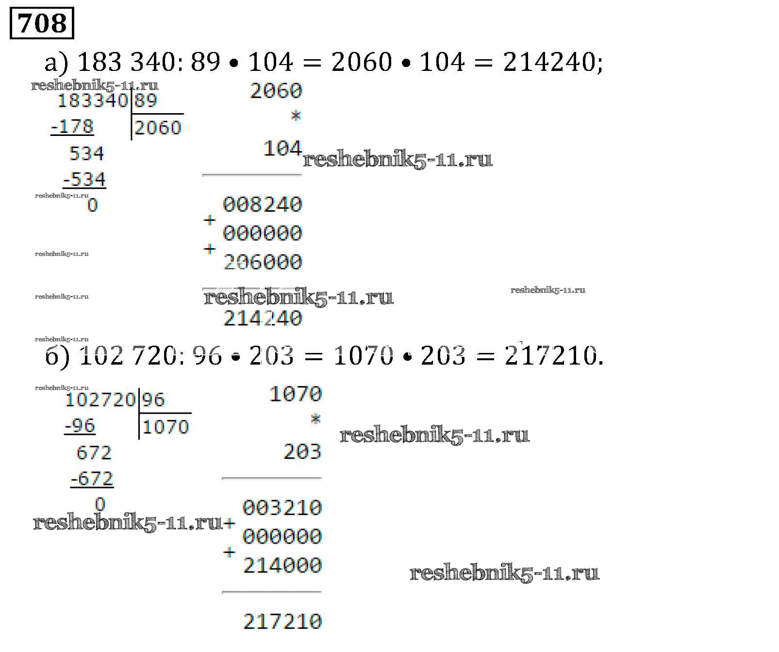 Готовая домашняя работа с ответами по Математике за 5 класс Виленкин, Жохов, Чесноков, Шварцбурд Учебник Мнемозина 2013 ФГОС - Глава 1. Натуральные числа (упражнения с 1 по 849) 708