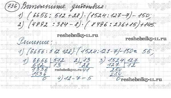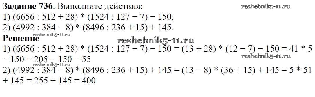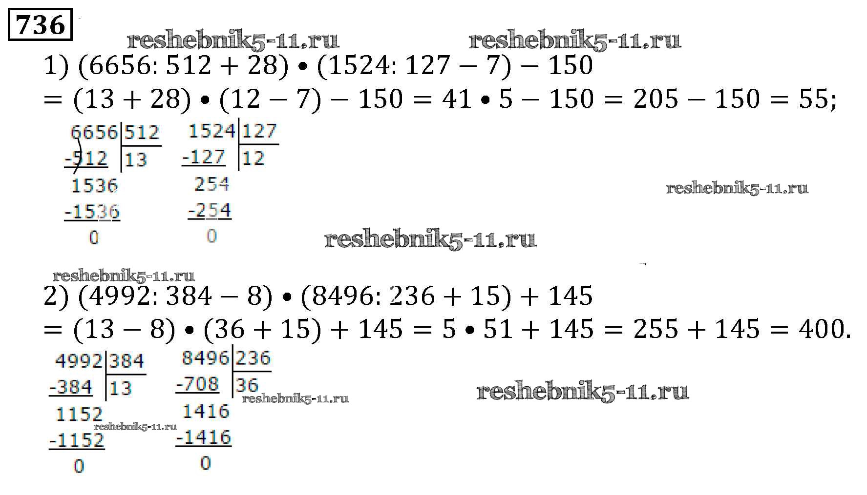 Готовая домашняя работа с ответами по Математике за 5 класс Виленкин, Жохов, Чесноков, Шварцбурд Учебник Мнемозина 2013 ФГОС - Глава 1. Натуральные числа (упражнения с 1 по 849) 736