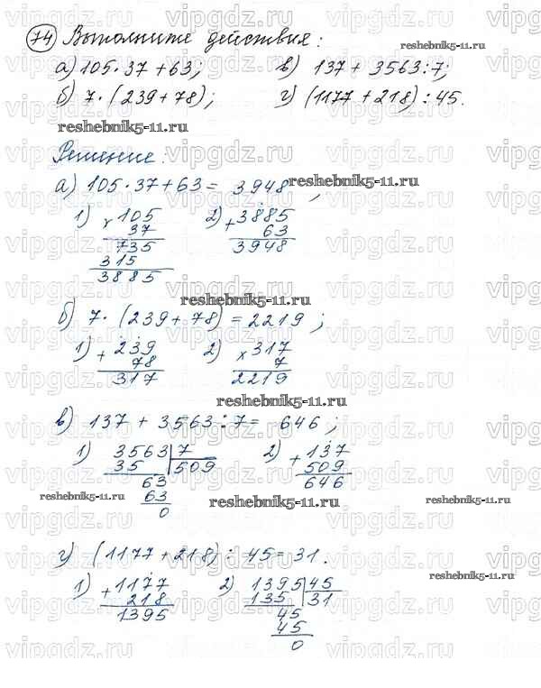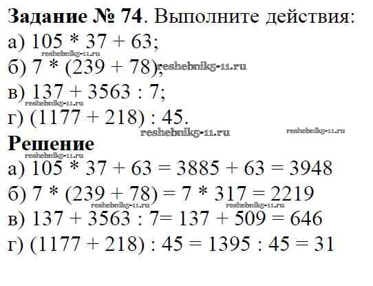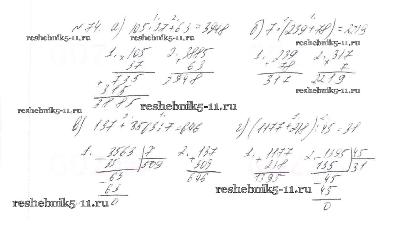 Готовая домашняя работа с ответами по Математике за 5 класс Виленкин, Жохов, Чесноков, Шварцбурд Учебник Мнемозина 2013 ФГОС - Глава 1. Натуральные числа (упражнения с 1 по 849) 74