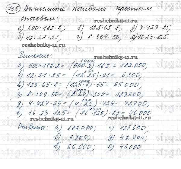 Готовая домашняя работа с ответами по Математике за 5 класс Виленкин, Жохов, Чесноков, Шварцбурд Учебник Мнемозина 2013 ФГОС - Глава 1. Натуральные числа (упражнения с 1 по 849) 765