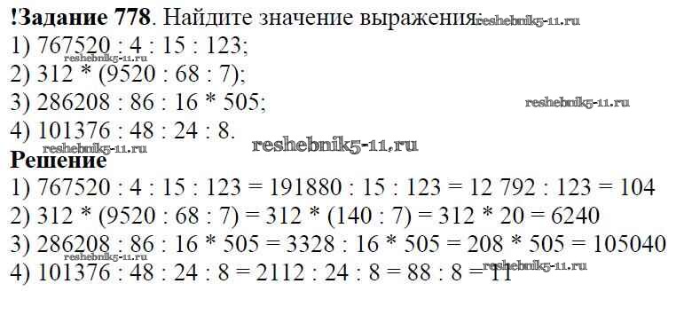 Готовая домашняя работа с ответами по Математике за 5 класс Виленкин, Жохов, Чесноков, Шварцбурд Учебник Мнемозина 2013 ФГОС - Глава 1. Натуральные числа (упражнения с 1 по 849) 778