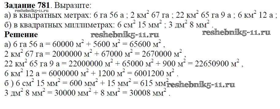 Готовая домашняя работа с ответами по Математике за 5 класс Виленкин, Жохов, Чесноков, Шварцбурд Учебник Мнемозина 2013 ФГОС - Глава 1. Натуральные числа (упражнения с 1 по 849) 781