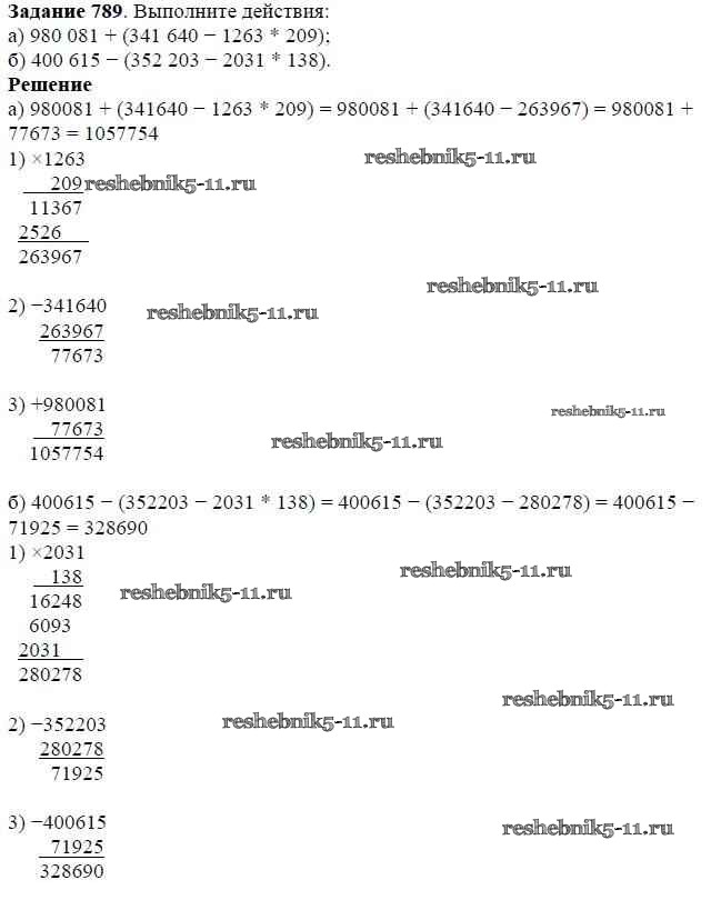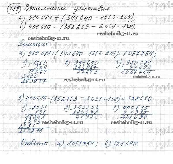 Готовая домашняя работа с ответами по Математике за 5 класс Виленкин, Жохов, Чесноков, Шварцбурд Учебник Мнемозина 2013 ФГОС - Глава 1. Натуральные числа (упражнения с 1 по 849) 789