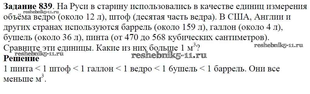 Готовая домашняя работа с ответами по Математике за 5 класс Виленкин, Жохов, Чесноков, Шварцбурд Учебник Мнемозина 2013 ФГОС - Глава 1. Натуральные числа (упражнения с 1 по 849) 839