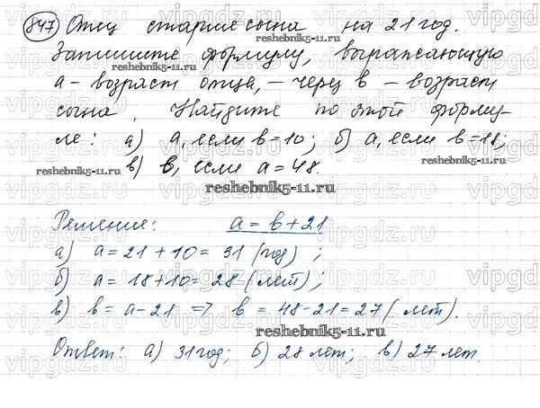 Готовая домашняя работа с ответами по Математике за 5 класс Виленкин, Жохов, Чесноков, Шварцбурд Учебник Мнемозина 2013 ФГОС - Глава 1. Натуральные числа (упражнения с 1 по 849) 847
