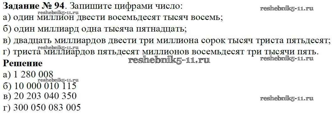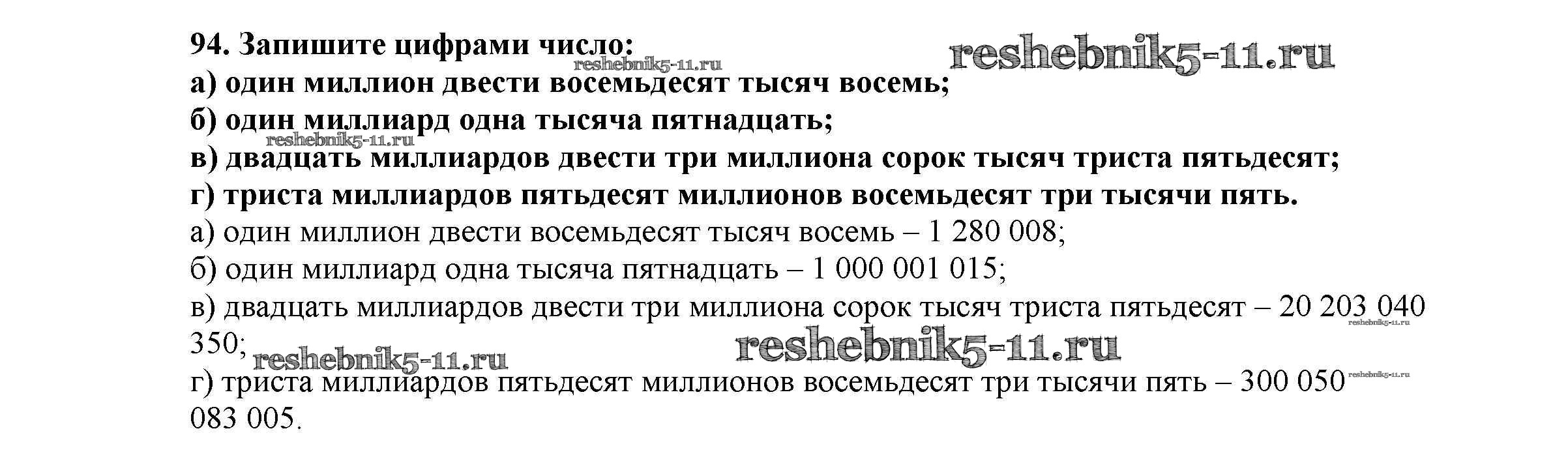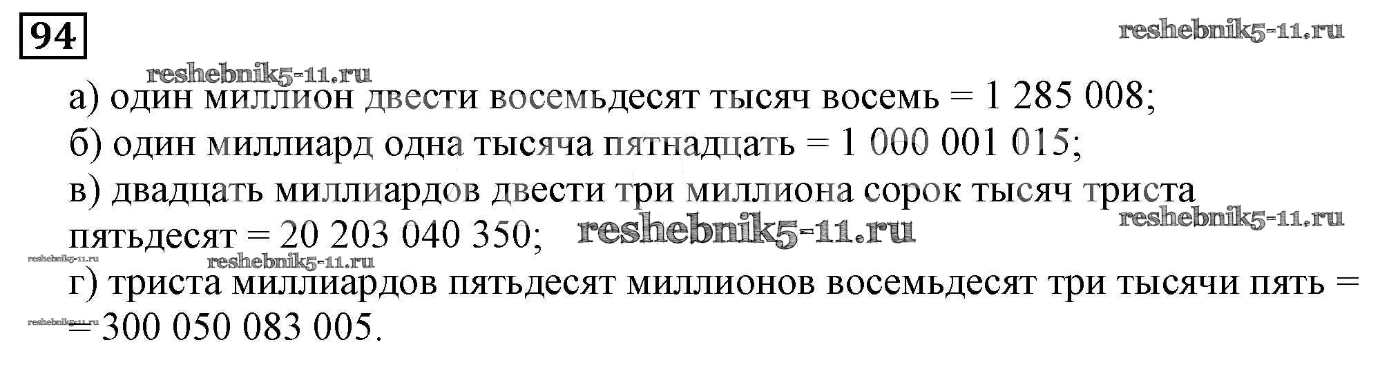 Готовая домашняя работа с ответами по Математике за 5 класс Виленкин, Жохов, Чесноков, Шварцбурд Учебник Мнемозина 2013 ФГОС - Глава 1. Натуральные числа (упражнения с 1 по 849) 94