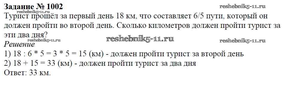 Готовая домашняя работа с ответами по Математике за 5 класс Виленкин, Жохов, Чесноков, Шварцбурд Учебник Мнемозина 2013 ФГОС - Глава 2. Дробные числа (упражнения с 850 по 1849) 1002