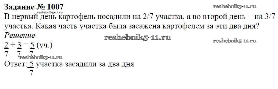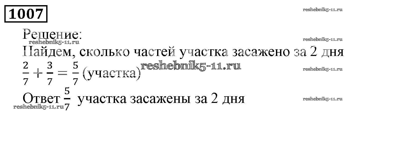 Готовая домашняя работа с ответами по Математике за 5 класс Виленкин, Жохов, Чесноков, Шварцбурд Учебник Мнемозина 2013 ФГОС - Глава 2. Дробные числа (упражнения с 850 по 1849) 1007