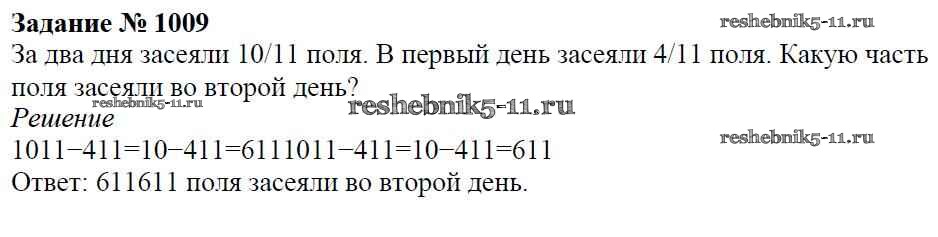Готовая домашняя работа с ответами по Математике за 5 класс Виленкин, Жохов, Чесноков, Шварцбурд Учебник Мнемозина 2013 ФГОС - Глава 2. Дробные числа (упражнения с 850 по 1849) 1009