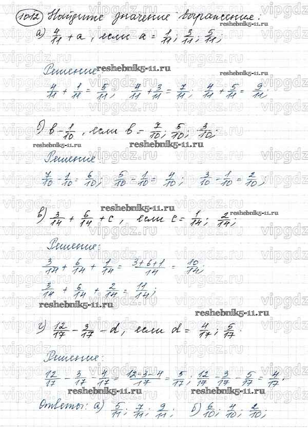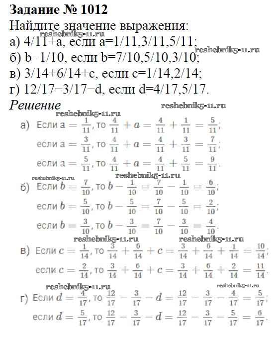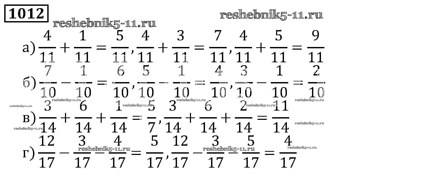 Готовая домашняя работа с ответами по Математике за 5 класс Виленкин, Жохов, Чесноков, Шварцбурд Учебник Мнемозина 2013 ФГОС - Глава 2. Дробные числа (упражнения с 850 по 1849) 1012