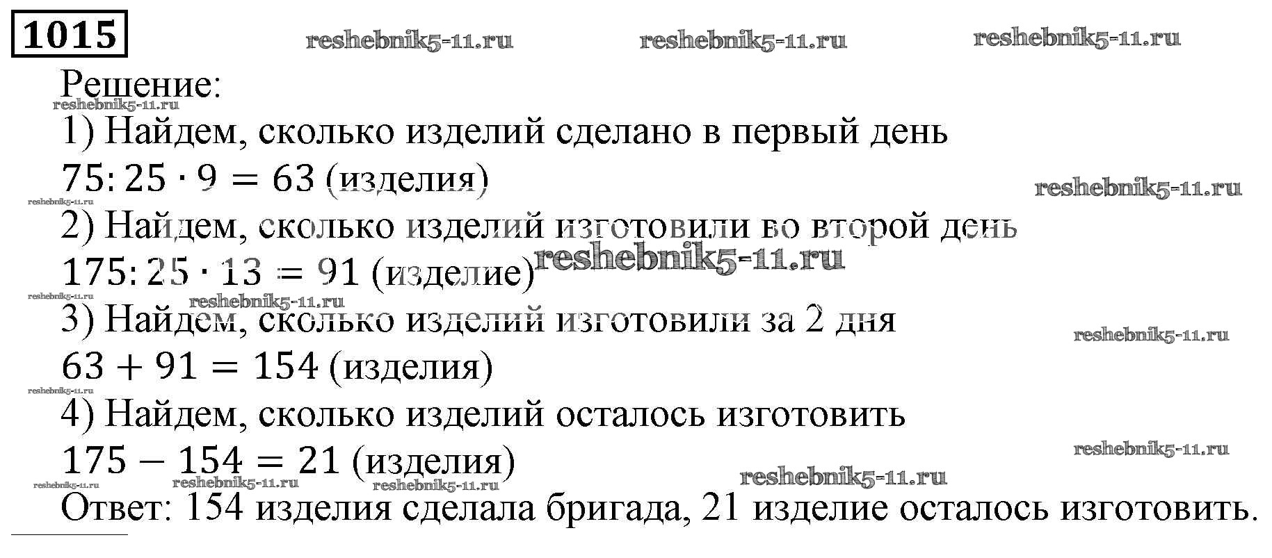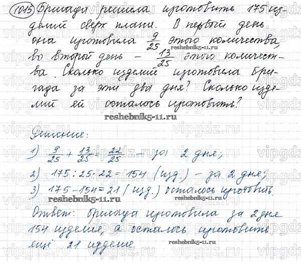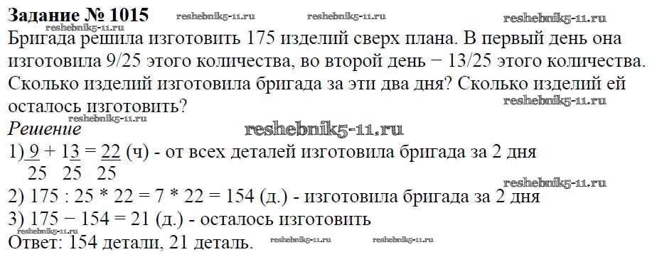 Готовая домашняя работа с ответами по Математике за 5 класс Виленкин, Жохов, Чесноков, Шварцбурд Учебник Мнемозина 2013 ФГОС - Глава 2. Дробные числа (упражнения с 850 по 1849) 1015