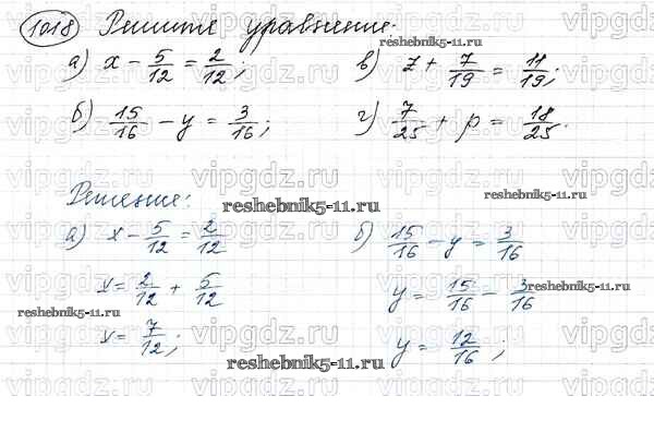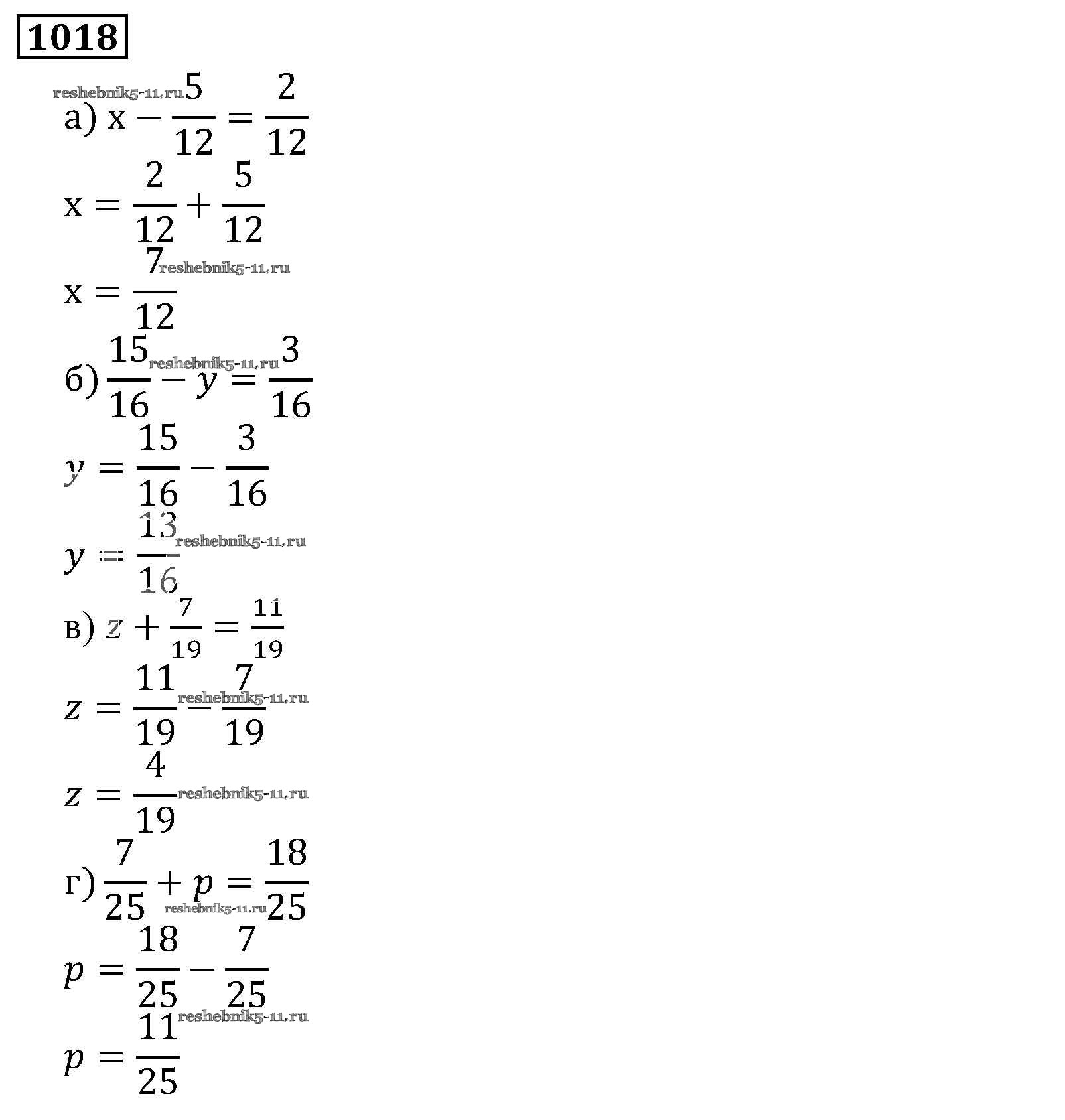 Готовая домашняя работа с ответами по Математике за 5 класс Виленкин, Жохов, Чесноков, Шварцбурд Учебник Мнемозина 2013 ФГОС - Глава 2. Дробные числа (упражнения с 850 по 1849) 1018