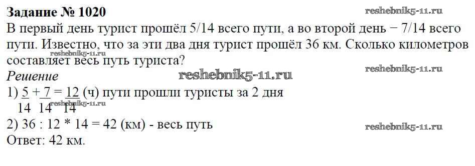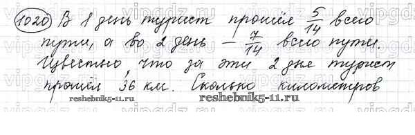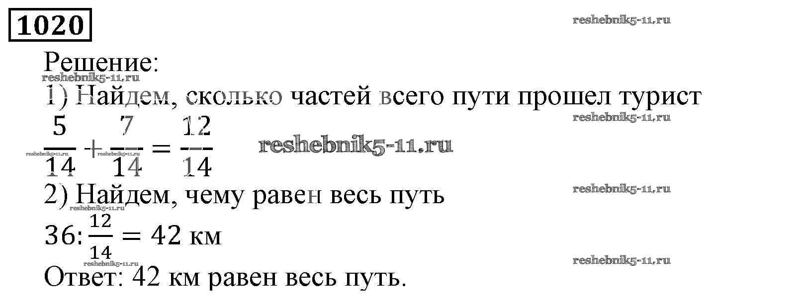 Готовая домашняя работа с ответами по Математике за 5 класс Виленкин, Жохов, Чесноков, Шварцбурд Учебник Мнемозина 2013 ФГОС - Глава 2. Дробные числа (упражнения с 850 по 1849) 1020