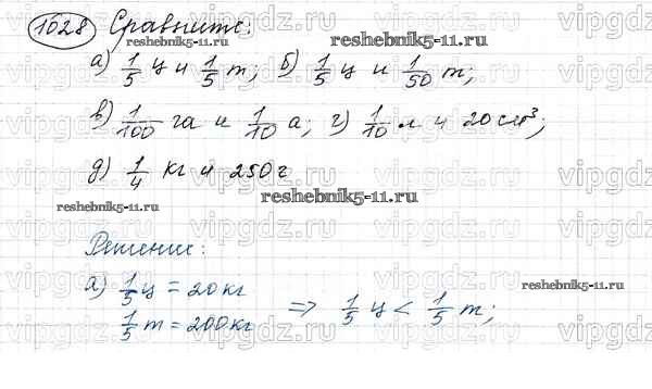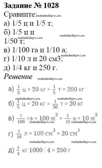 Готовая домашняя работа с ответами по Математике за 5 класс Виленкин, Жохов, Чесноков, Шварцбурд Учебник Мнемозина 2013 ФГОС - Глава 2. Дробные числа (упражнения с 850 по 1849) 1028