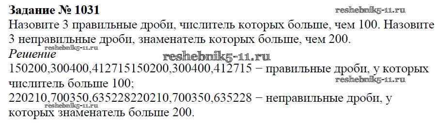 Готовая домашняя работа с ответами по Математике за 5 класс Виленкин, Жохов, Чесноков, Шварцбурд Учебник Мнемозина 2013 ФГОС - Глава 2. Дробные числа (упражнения с 850 по 1849) 1031