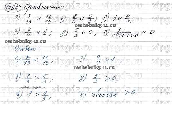 Готовая домашняя работа с ответами по Математике за 5 класс Виленкин, Жохов, Чесноков, Шварцбурд Учебник Мнемозина 2013 ФГОС - Глава 2. Дробные числа (упражнения с 850 по 1849) 1032