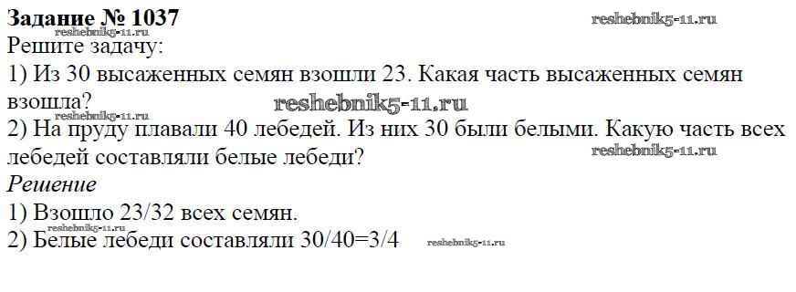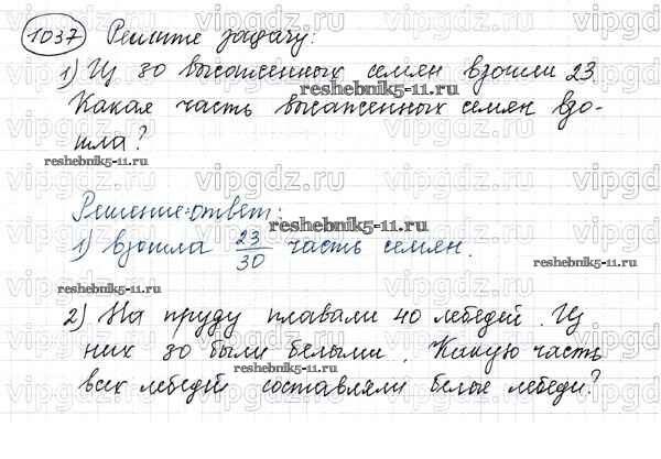 Готовая домашняя работа с ответами по Математике за 5 класс Виленкин, Жохов, Чесноков, Шварцбурд Учебник Мнемозина 2013 ФГОС - Глава 2. Дробные числа (упражнения с 850 по 1849) 1037