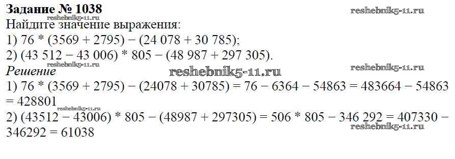Готовая домашняя работа с ответами по Математике за 5 класс Виленкин, Жохов, Чесноков, Шварцбурд Учебник Мнемозина 2013 ФГОС - Глава 2. Дробные числа (упражнения с 850 по 1849) 1038