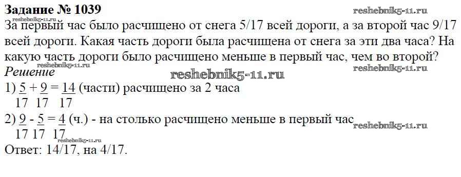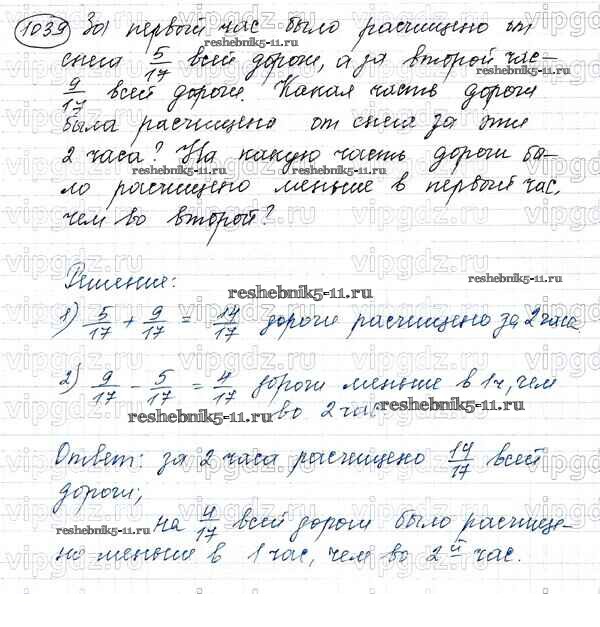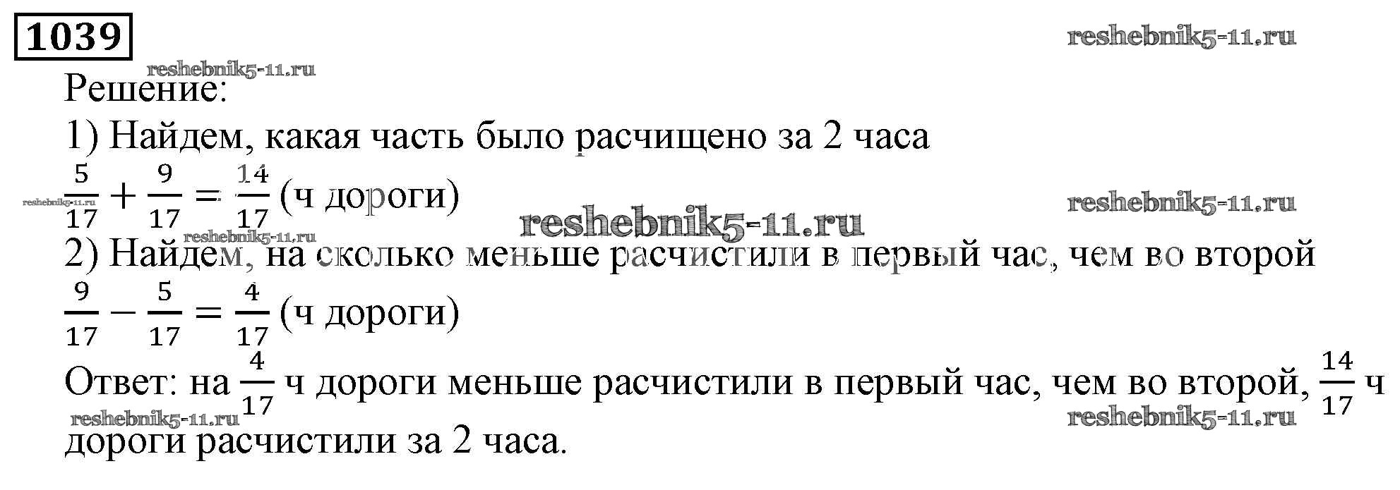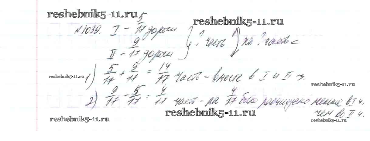 Готовая домашняя работа с ответами по Математике за 5 класс Виленкин, Жохов, Чесноков, Шварцбурд Учебник Мнемозина 2013 ФГОС - Глава 2. Дробные числа (упражнения с 850 по 1849) 1039