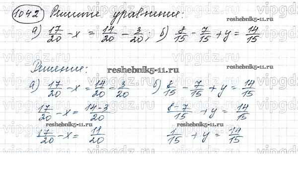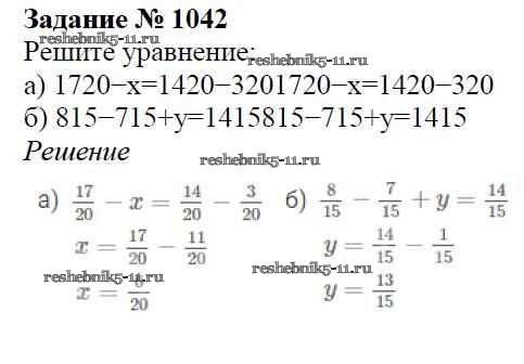 Готовая домашняя работа с ответами по Математике за 5 класс Виленкин, Жохов, Чесноков, Шварцбурд Учебник Мнемозина 2013 ФГОС - Глава 2. Дробные числа (упражнения с 850 по 1849) 1042