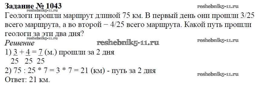 Готовая домашняя работа с ответами по Математике за 5 класс Виленкин, Жохов, Чесноков, Шварцбурд Учебник Мнемозина 2013 ФГОС - Глава 2. Дробные числа (упражнения с 850 по 1849) 1043