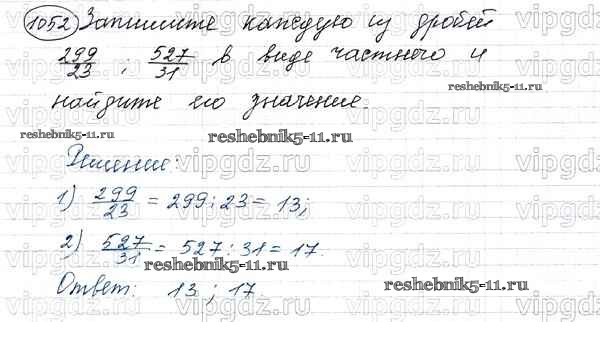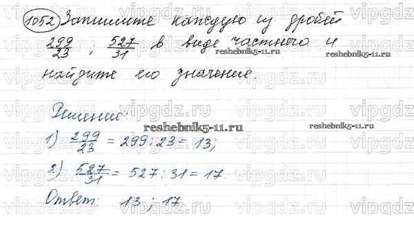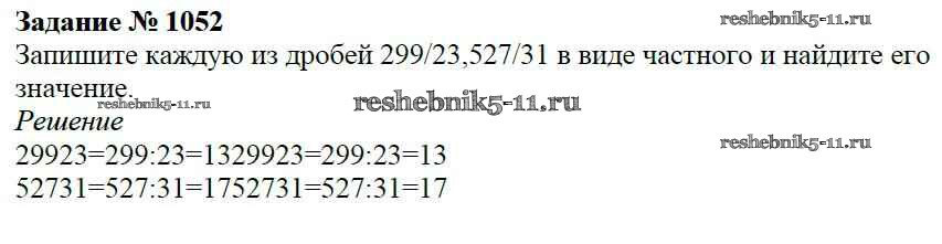 Готовая домашняя работа с ответами по Математике за 5 класс Виленкин, Жохов, Чесноков, Шварцбурд Учебник Мнемозина 2013 ФГОС - Глава 2. Дробные числа (упражнения с 850 по 1849) 1052