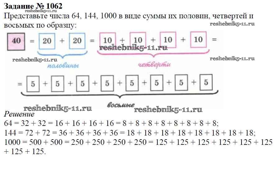 Готовая домашняя работа с ответами по Математике за 5 класс Виленкин, Жохов, Чесноков, Шварцбурд Учебник Мнемозина 2013 ФГОС - Глава 2. Дробные числа (упражнения с 850 по 1849) 1062