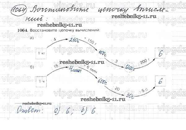 Готовая домашняя работа с ответами по Математике за 5 класс Виленкин, Жохов, Чесноков, Шварцбурд Учебник Мнемозина 2013 ФГОС - Глава 2. Дробные числа (упражнения с 850 по 1849) 1064