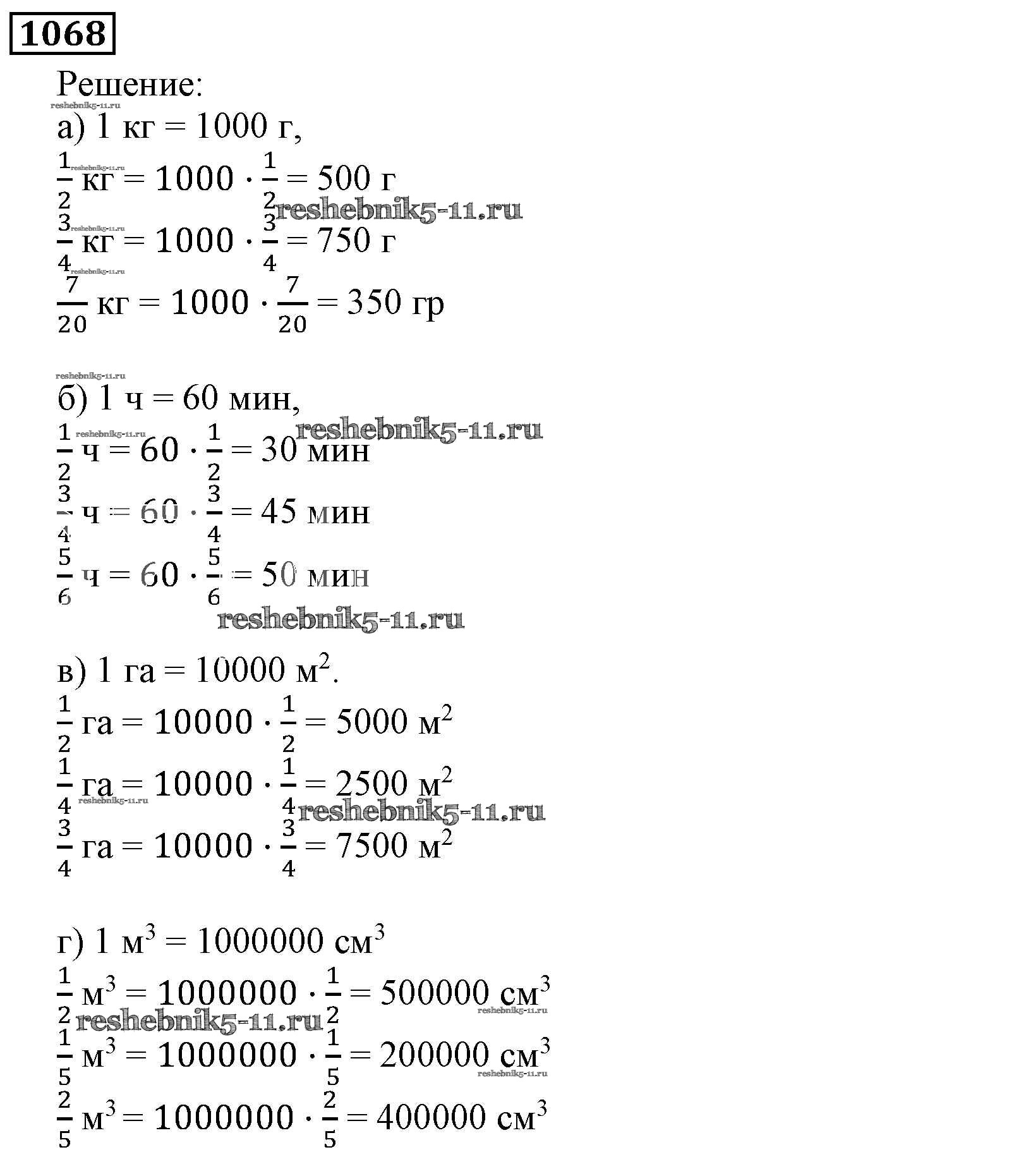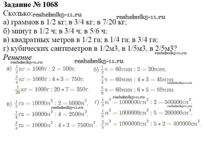 Готовая домашняя работа с ответами по Математике за 5 класс Виленкин, Жохов, Чесноков, Шварцбурд Учебник Мнемозина 2013 ФГОС - Глава 2. Дробные числа (упражнения с 850 по 1849) 1068