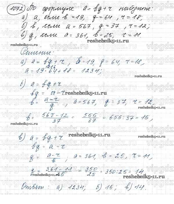 Готовая домашняя работа с ответами по Математике за 5 класс Виленкин, Жохов, Чесноков, Шварцбурд Учебник Мнемозина 2013 ФГОС - Глава 2. Дробные числа (упражнения с 850 по 1849) 1072