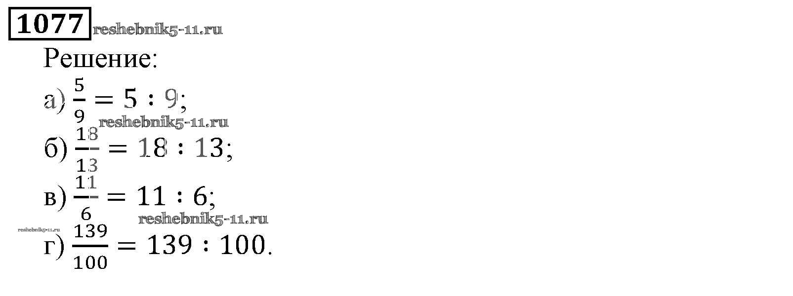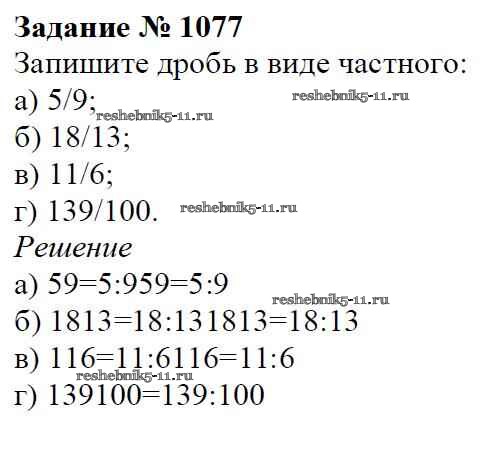 Готовая домашняя работа с ответами по Математике за 5 класс Виленкин, Жохов, Чесноков, Шварцбурд Учебник Мнемозина 2013 ФГОС - Глава 2. Дробные числа (упражнения с 850 по 1849) 1077