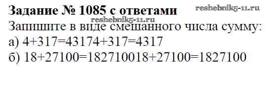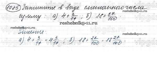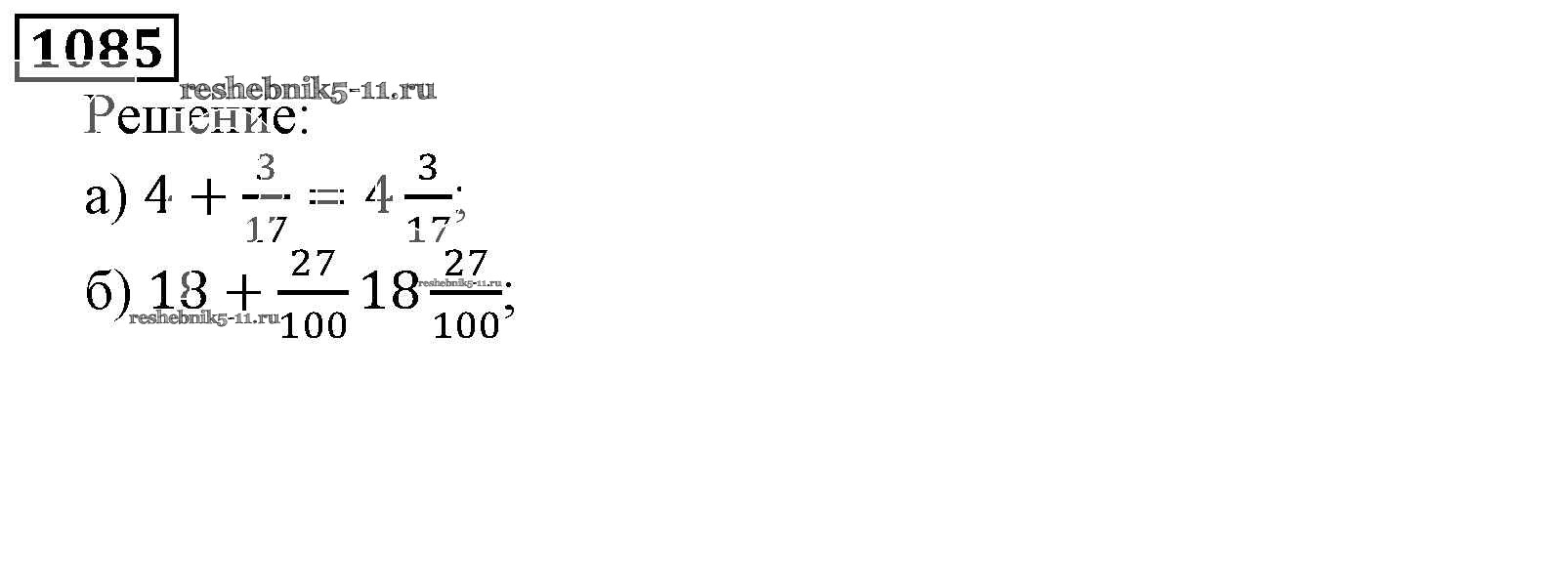 Готовая домашняя работа с ответами по Математике за 5 класс Виленкин, Жохов, Чесноков, Шварцбурд Учебник Мнемозина 2013 ФГОС - Глава 2. Дробные числа (упражнения с 850 по 1849) 1085