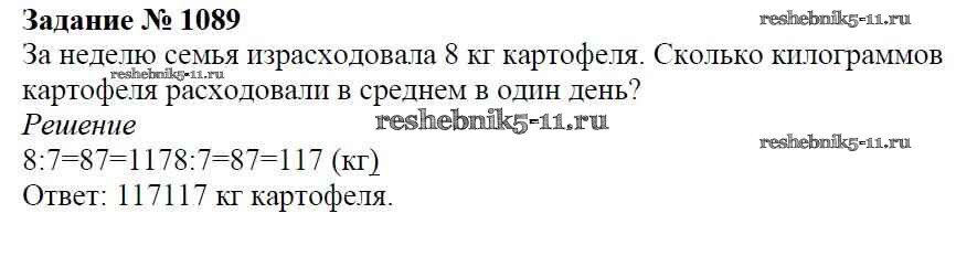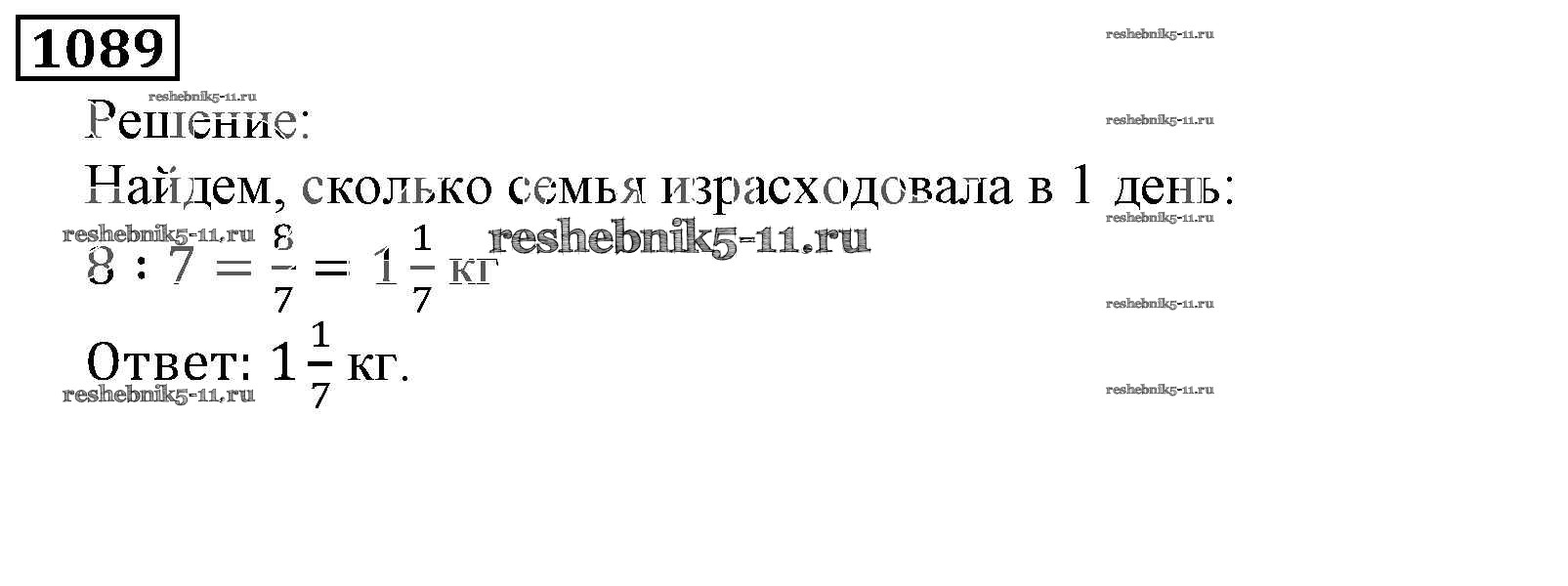 Готовая домашняя работа с ответами по Математике за 5 класс Виленкин, Жохов, Чесноков, Шварцбурд Учебник Мнемозина 2013 ФГОС - Глава 2. Дробные числа (упражнения с 850 по 1849) 1089