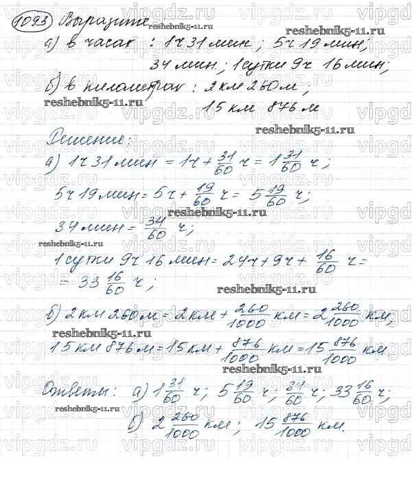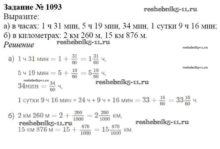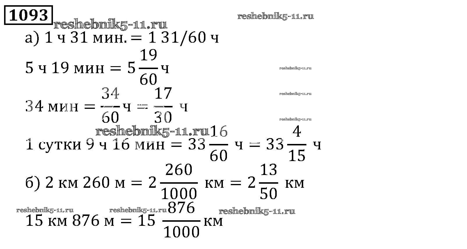 Готовая домашняя работа с ответами по Математике за 5 класс Виленкин, Жохов, Чесноков, Шварцбурд Учебник Мнемозина 2013 ФГОС - Глава 2. Дробные числа (упражнения с 850 по 1849) 1093