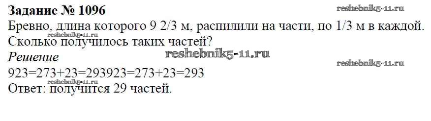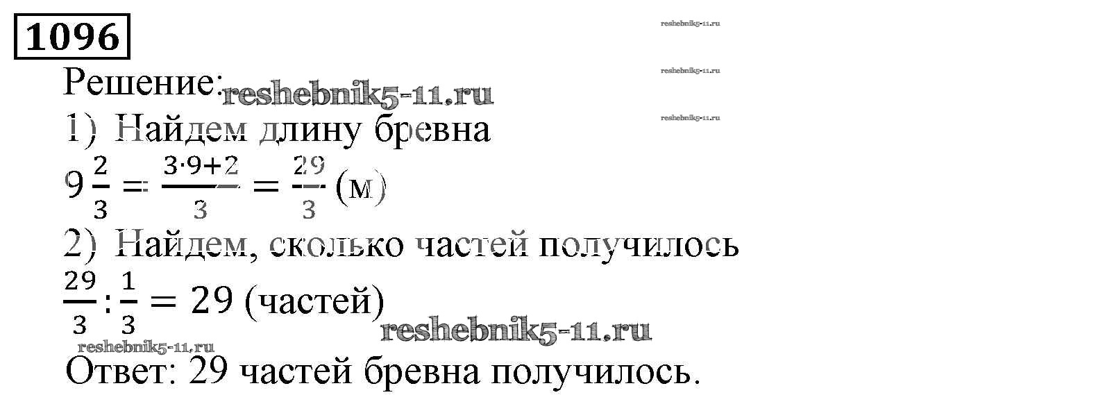 Готовая домашняя работа с ответами по Математике за 5 класс Виленкин, Жохов, Чесноков, Шварцбурд Учебник Мнемозина 2013 ФГОС - Глава 2. Дробные числа (упражнения с 850 по 1849) 1096