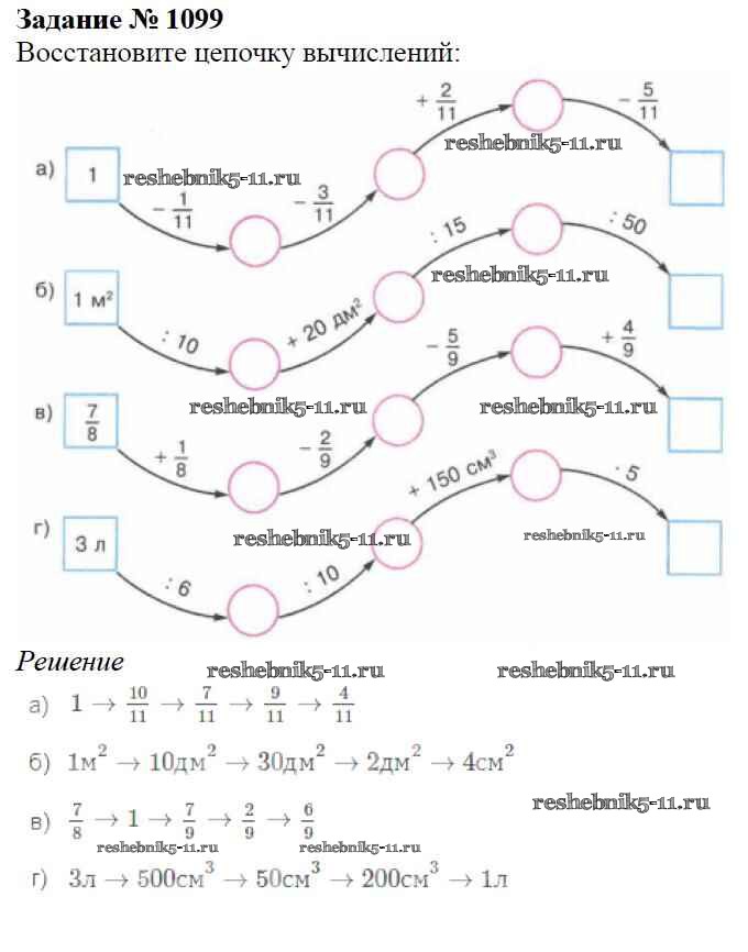 Готовая домашняя работа с ответами по Математике за 5 класс Виленкин, Жохов, Чесноков, Шварцбурд Учебник Мнемозина 2013 ФГОС - Глава 2. Дробные числа (упражнения с 850 по 1849) 1099