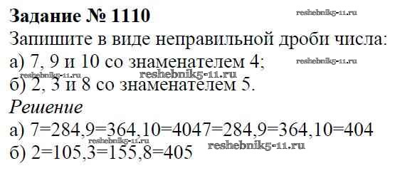 Готовая домашняя работа с ответами по Математике за 5 класс Виленкин, Жохов, Чесноков, Шварцбурд Учебник Мнемозина 2013 ФГОС - Глава 2. Дробные числа (упражнения с 850 по 1849) 1110