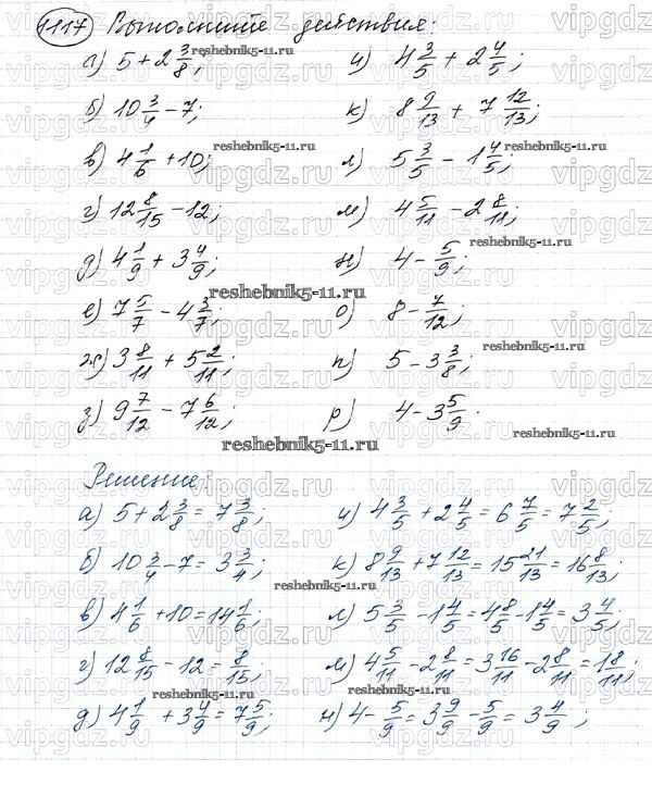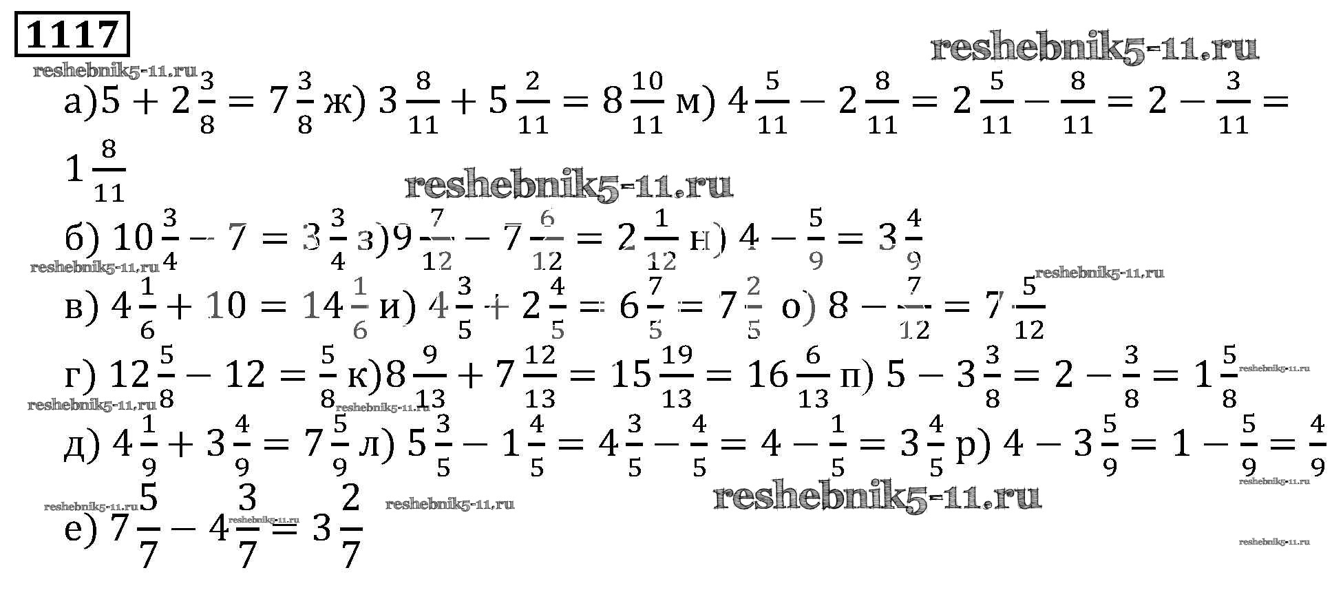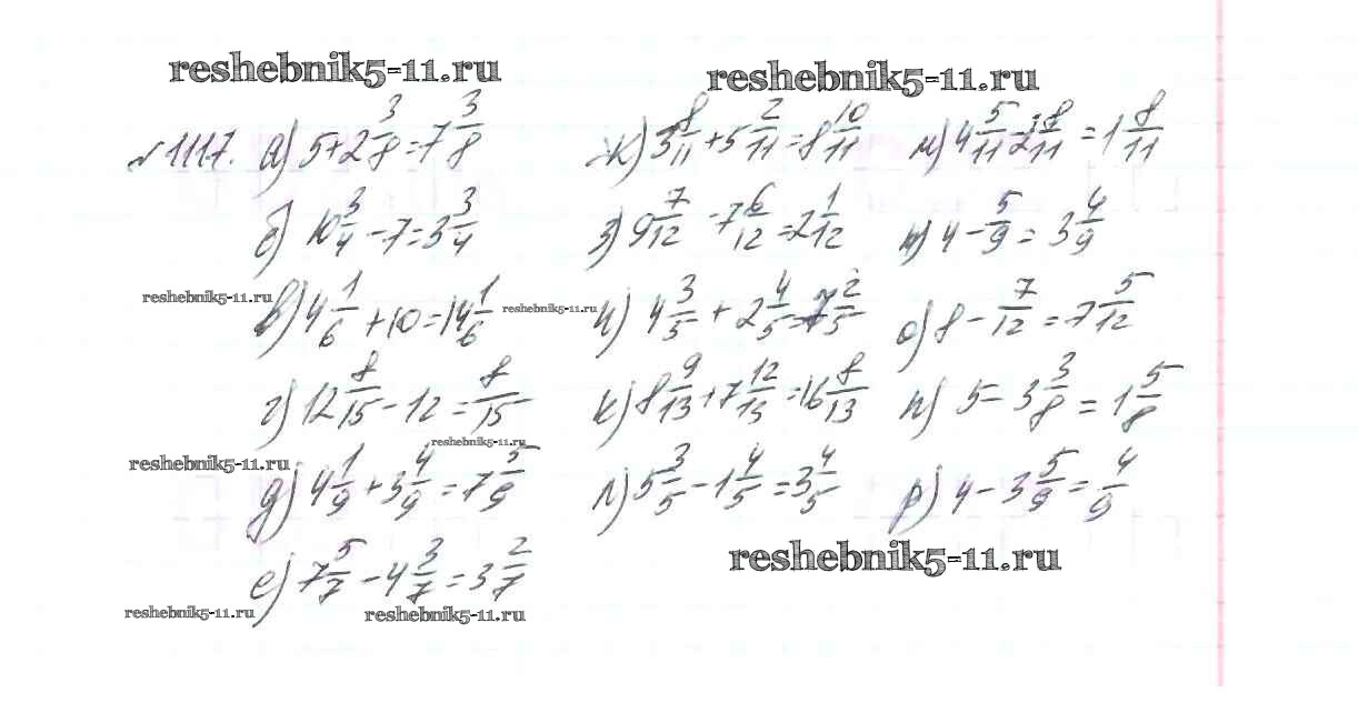 Готовая домашняя работа с ответами по Математике за 5 класс Виленкин, Жохов, Чесноков, Шварцбурд Учебник Мнемозина 2013 ФГОС - Глава 2. Дробные числа (упражнения с 850 по 1849) 1117