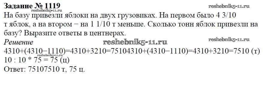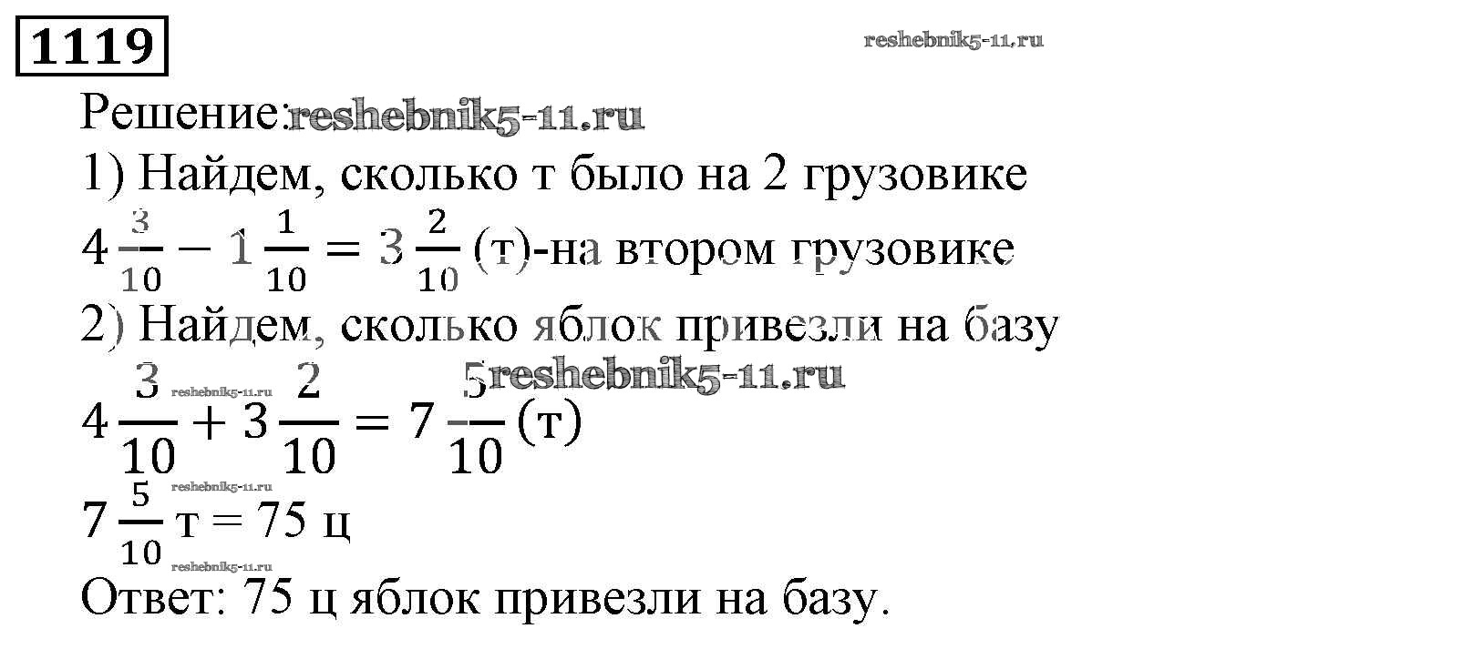 Готовая домашняя работа с ответами по Математике за 5 класс Виленкин, Жохов, Чесноков, Шварцбурд Учебник Мнемозина 2013 ФГОС - Глава 2. Дробные числа (упражнения с 850 по 1849) 1119